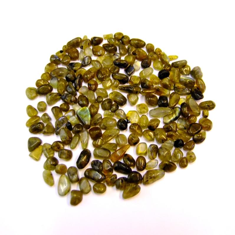200g BAG OF LABRADORITE POLISHED CRYSTAL CHIPS.
