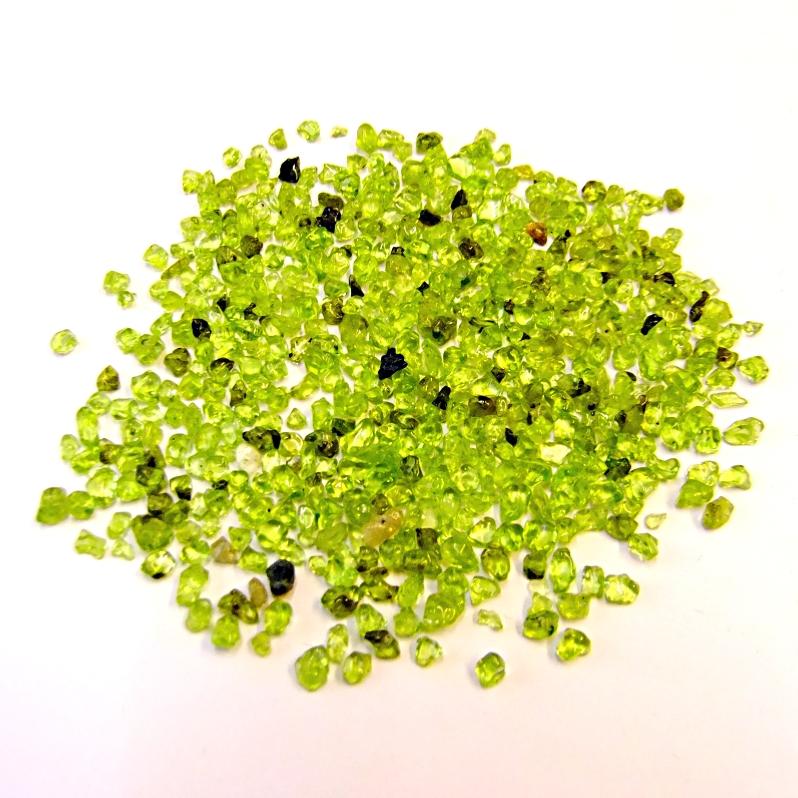 200g BAG OF PERIDOT POLISHED CRYSTAL CHIPS.