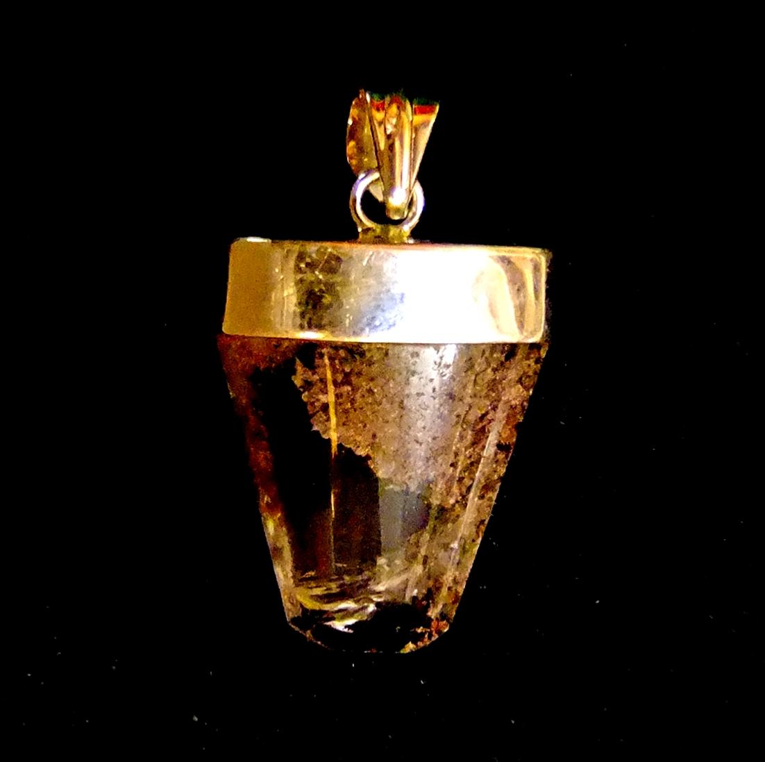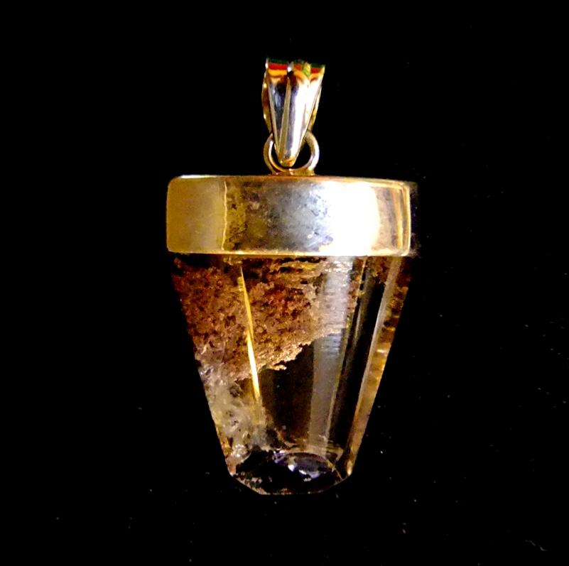 925 silver capped designer pendant featuring a polished crystal in chlorite in quartz also known as garden quartz.