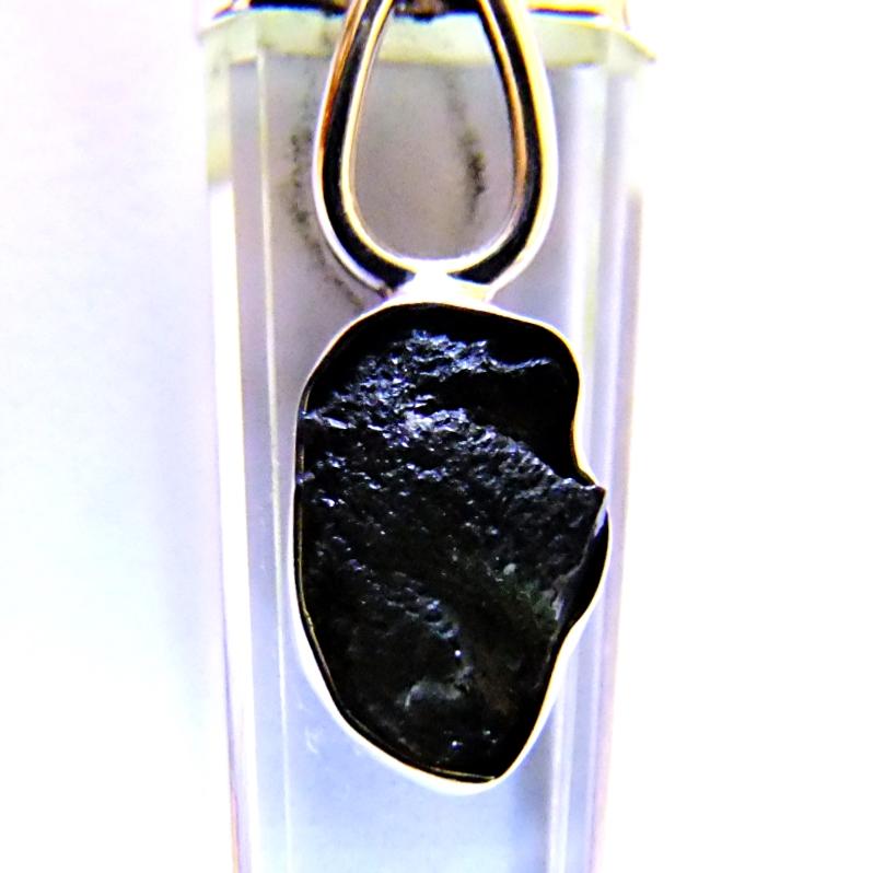 925 Silver Capped Quartz with Raw Moldavite Crystal