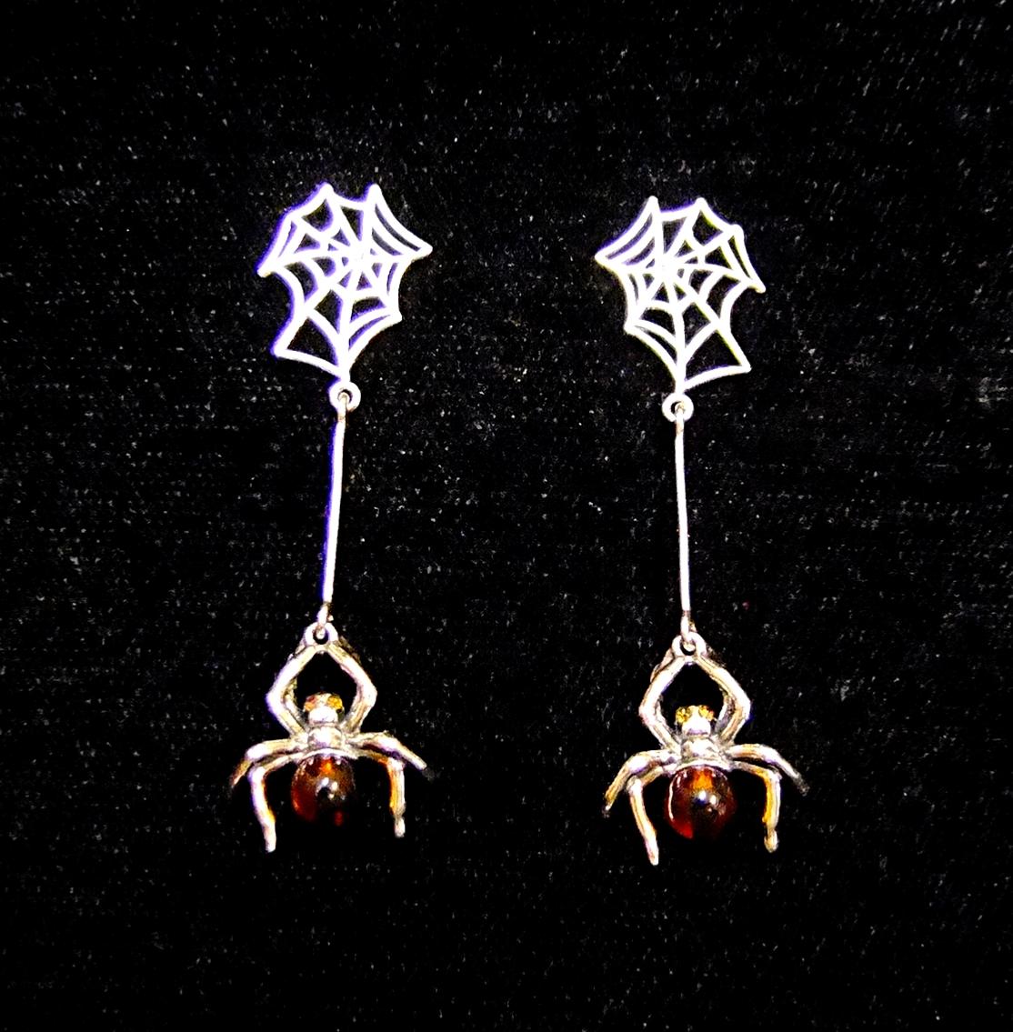 FEATURES BALTIC AMBER ELEMENTS AS THE EYES AND ON THE BODY OF THE SPIDER.
