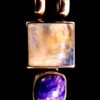 925 silver designer pendant featuring a square dome polished cabochon in moonstone together with a smaller polished charoite cabochon.