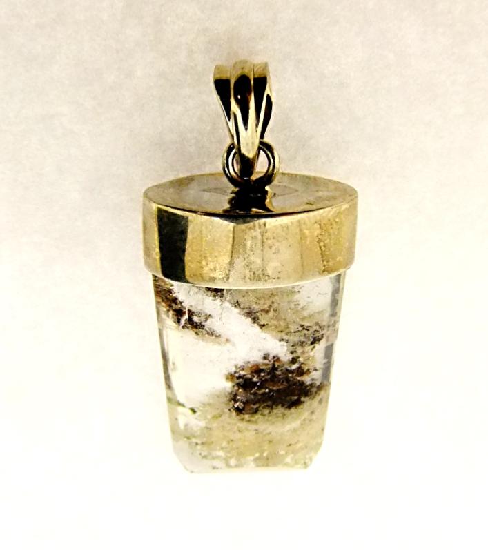 925 silver designer pendant featuring a polished quartz with chlorite &, lithium crystal.