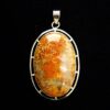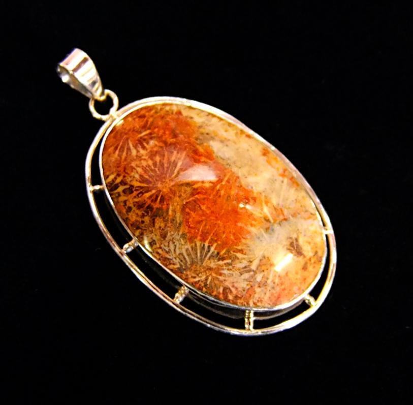 925 silver designer pendant featuring a large oval dome polished cabochon stone in fossilised coral.