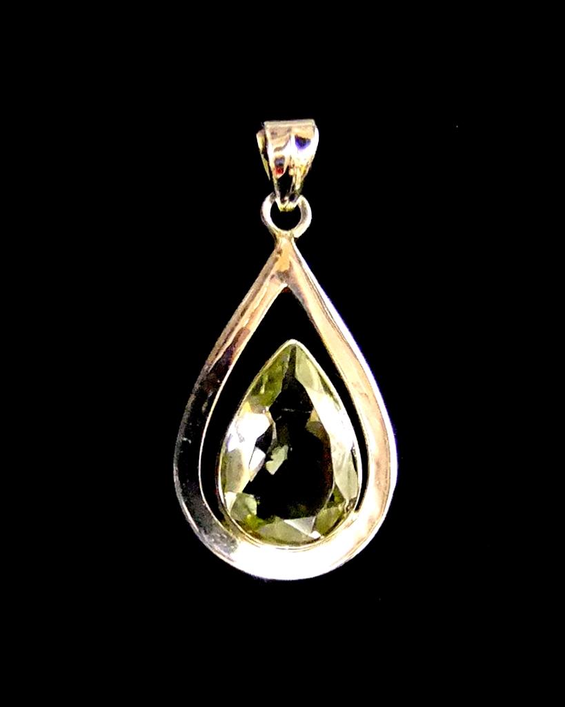925 silver designer pendant featuring a single faceted teardrop shape cabochon in prasiolite.