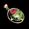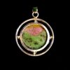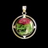925 silver designer pendant featuring a single round dome polished cabochon in ruby with zoisite.