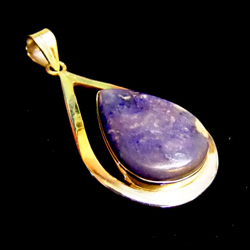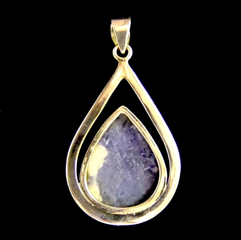 925 silver designer pendant featuring a large teardrop shape dome polished cabochon stone in sodalite. ,