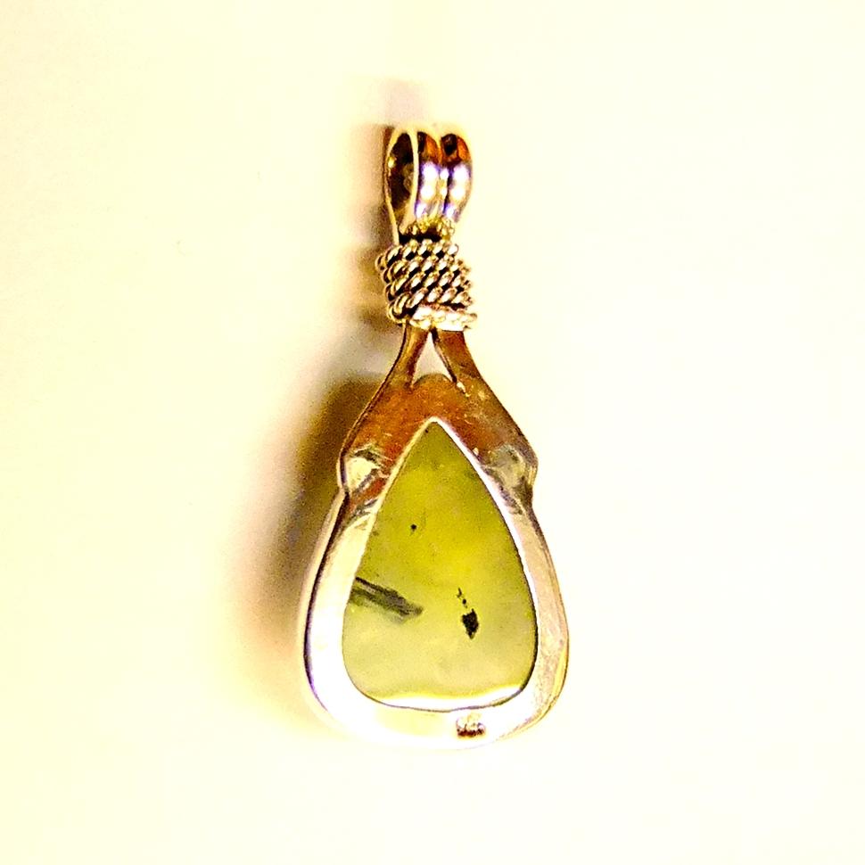 925 Silver Designer Pendant Featuring Epidot with Prehnite