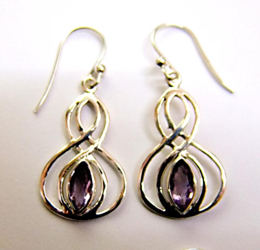 925 SILVER PENDANT STYLE EARRINGS FEATURING A SINGLE FACETED CATSEYE CABOCHON IN A CHOISE OF AMETHYST, BLUE TOPAZ OR MYSTIC TOPAZ.
