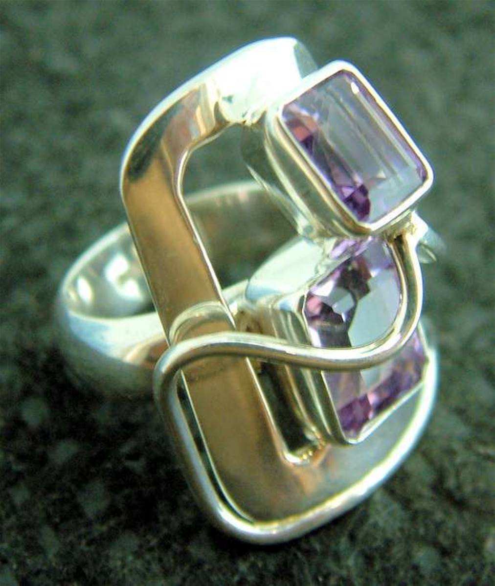 Features square cut faceted cabochons in amethyst.ring size-lweight-13g.CABOCHON Sizes-8 x 6mm, 10 x 8mm.