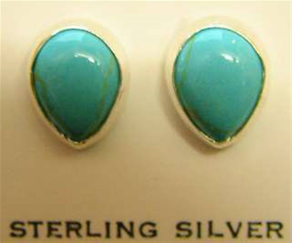 925 SILVER STUD EARRINGS FEATURING TEARDROP SHAPE CABOCHONS IN TURQUOISE.CABOCHON SIZE = 9MM x 7MM.WEIGHT = 3g PAIR.