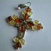 Amber Cross Pendant Set with Three Colours Of Amber