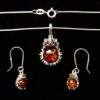 hedgehog design necklace &, earring set in 925 silver featuring baltic amber .