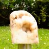 amethyst stalactitic polished face crystal specimen with flat cut base to stand.