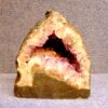 amethyst with agate mini cave specimen featuring polished flat cut front face and flat base to stand.