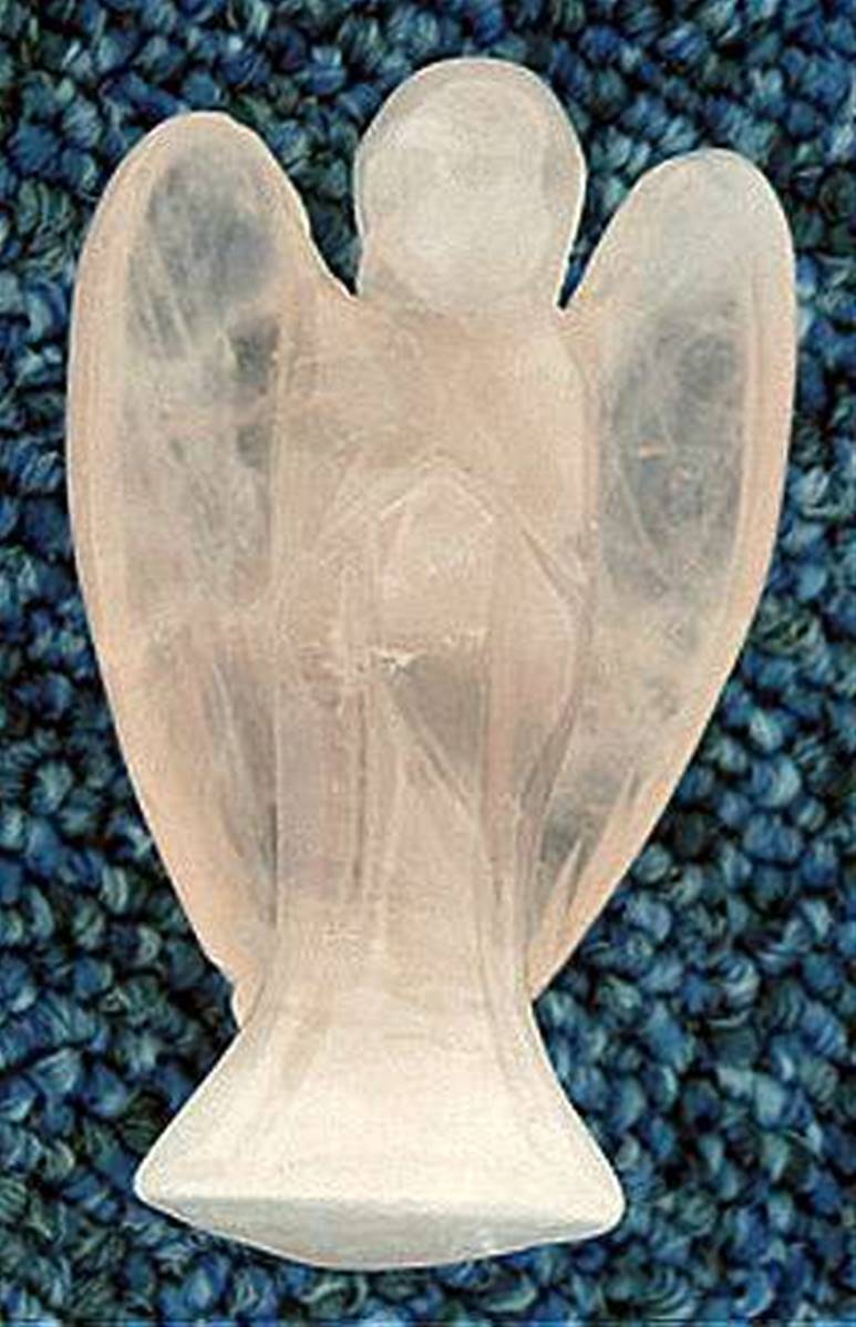 ANGEL CARVING IN ROSE QUARTZ.SIZE = 50MM TALL APROx.WEIGHT = 35g.