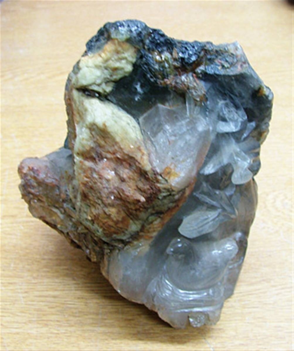 Animal Carvings on Smokey Quartz with Tourmaline Boulder