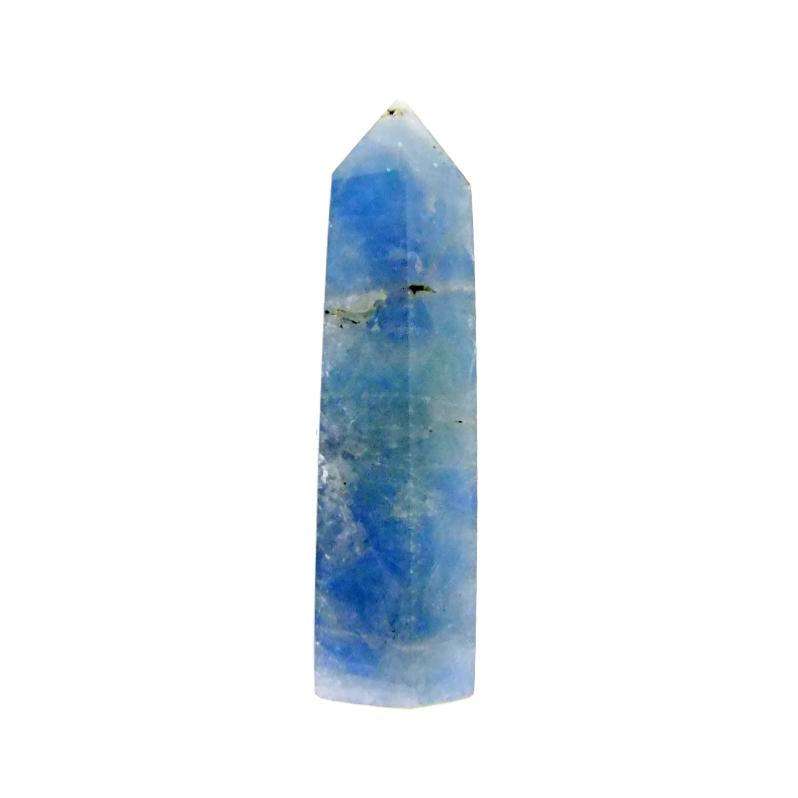 blue fluorite fully polished point specimen with flat cut base to stand.