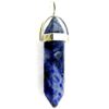 BLUE GOLDSTONE DOUBLE TERMINATED HEALING POINT PENDANT FEATURING A SILVER PLATED BAIL.