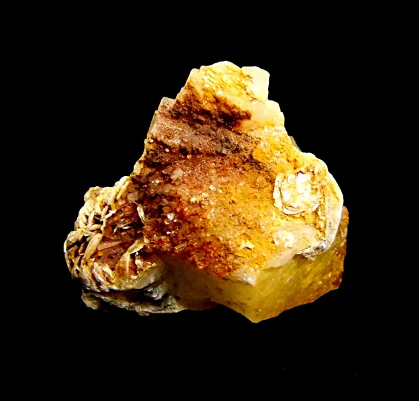 blue topaz crystal with imperial topaz growth &, mica formation. ,