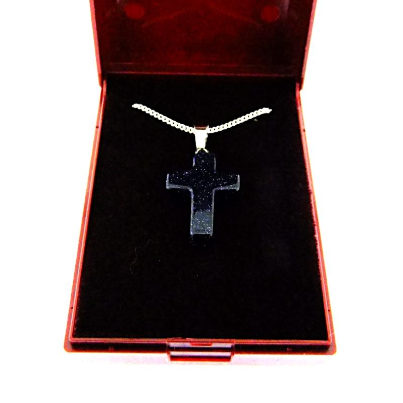 Boxed Gemstone Cross Pendant in Blue Goldstone
