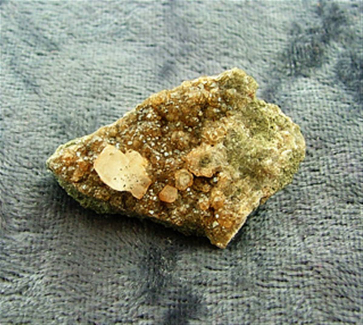 Calcite with analcime rough crystal specimen.originating from-croft quarry, croft, leicestershire, england.size = 33mm x 20mm x 13mm aprox.WEIGHT = 6g.SPECIMEN Comes in a plastic display case with a description label.