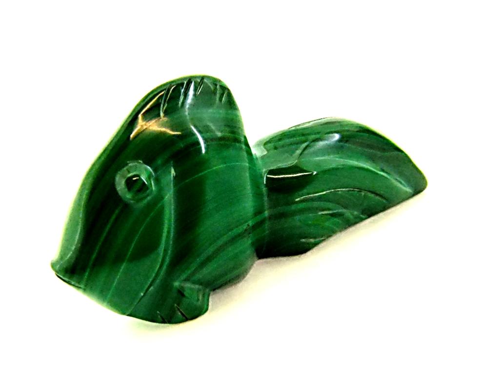 Carving of a fish in malachite. , ,