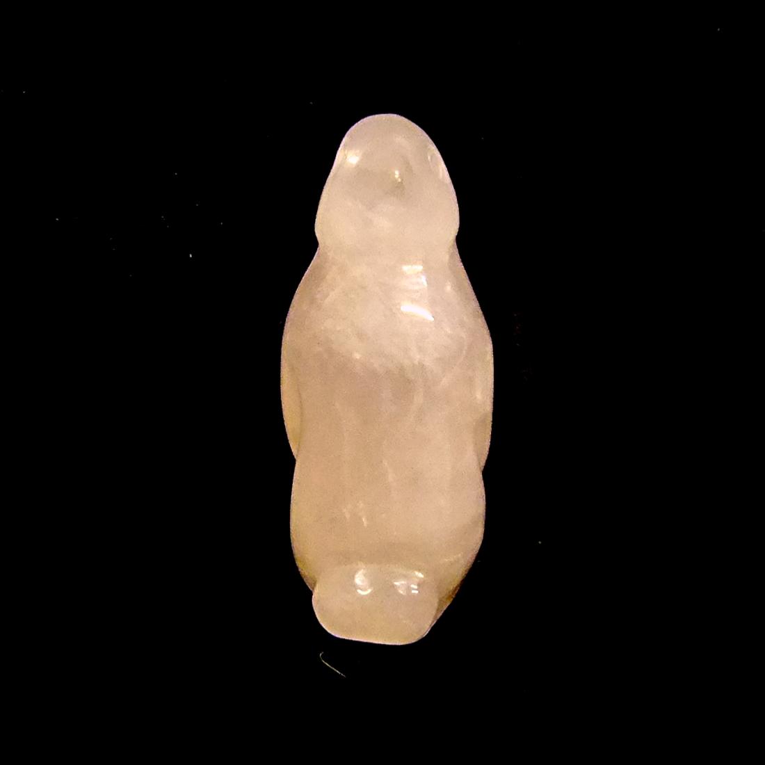 carving of a penguin in rose quartz. ,