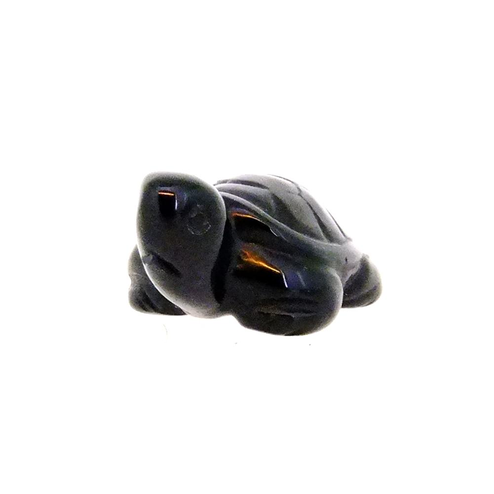 carving of a tortoise in black obsidian.
