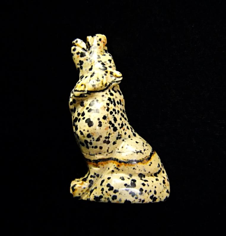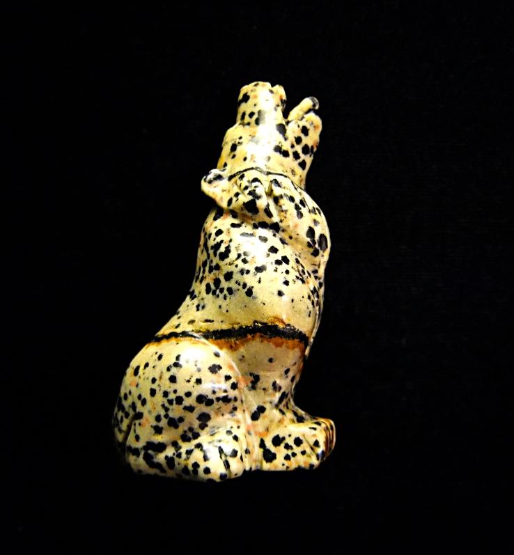 carving of a wolf in dalmation jasper. ,