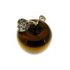 carving of an apple in tigerseye featuring silver plated stalk and leaf detail set with faceted swarovski crystals.