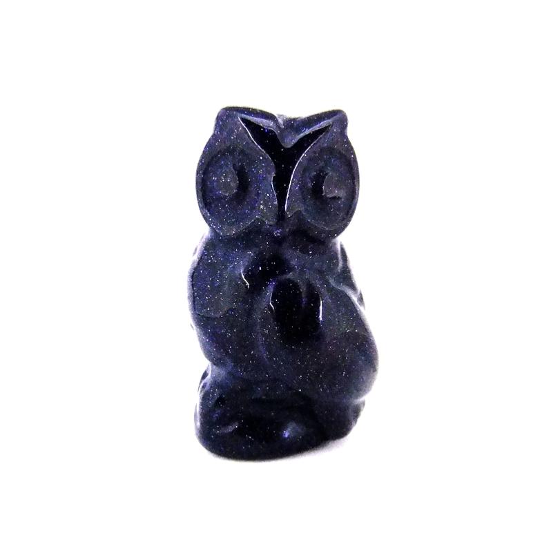 carving of an owl in blue gold stone. ,