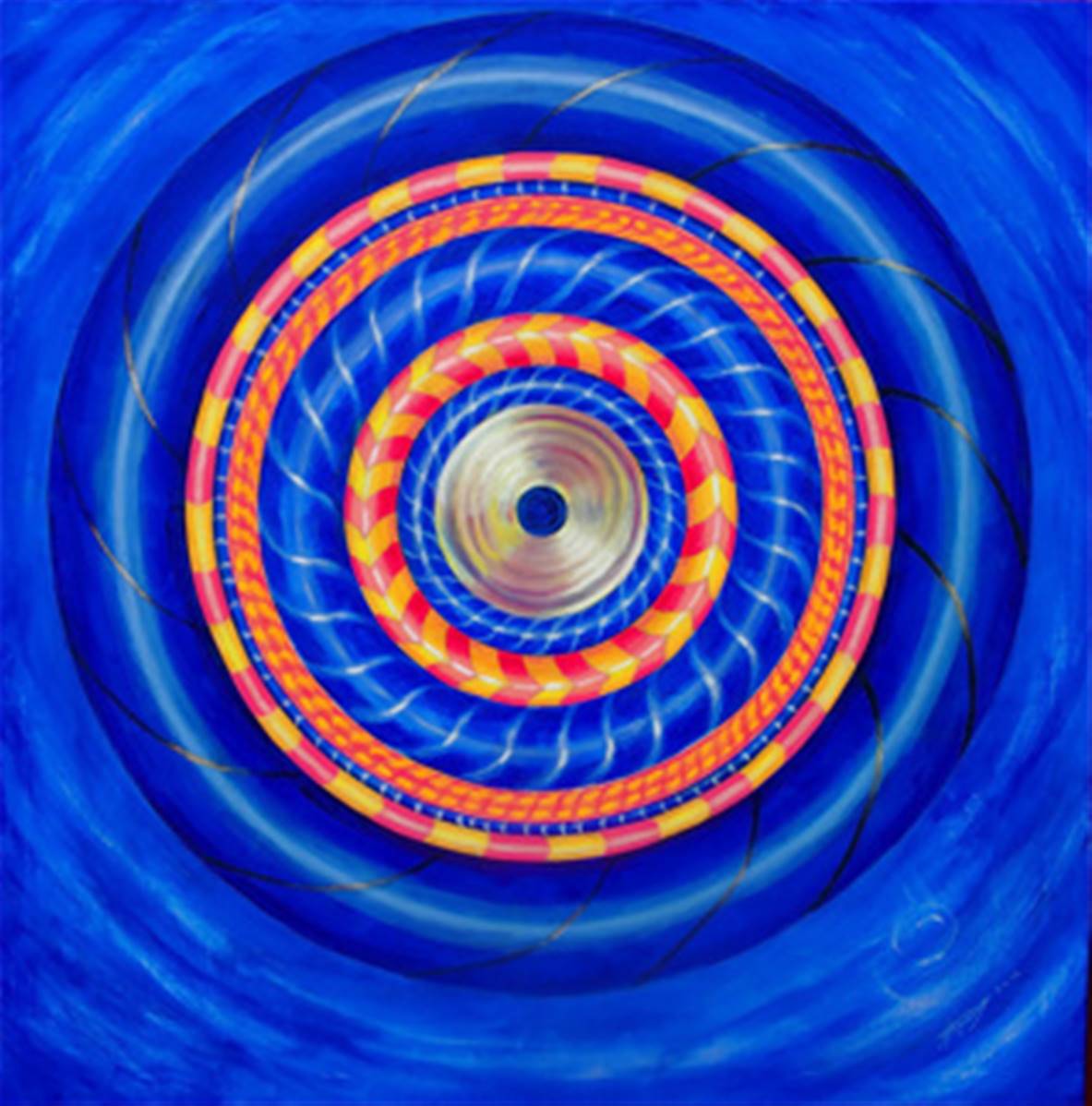Charkravartin means ”Wheel Turner” and was used as an epithet for the buddha whose teachings pervaded many lands.Here, the concentric circles spin like catherine wheels generating cosmic energy which has a profound and subtle healing effect on the mind of the viewer. This mandala also helps the aspirant to deepen their level of meditation. Those that have seen the painting have remarked on it’s enlightening properties and have reported experiencing a sense of joy as they viewed the image.The original painting measuring 100cm x 100cm was produced on canvas using acrylics and oil pastels.A4 size print with bevelled mount in textured ivory.approximate size 41 x 33cm.Each limited edition print of 500 only comes with a numbered certificate signed by the artist.