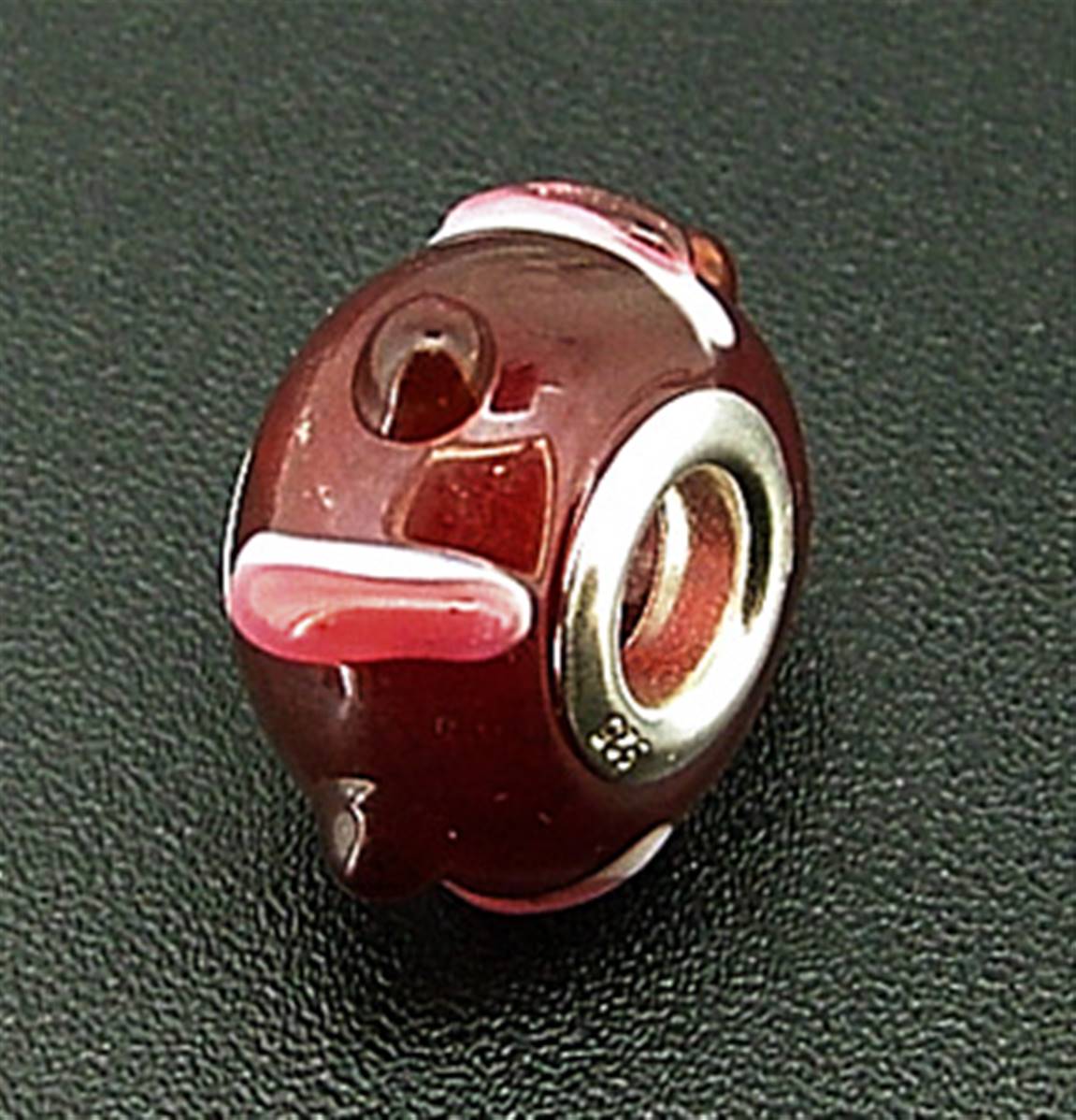 IN GLASS WITH RAISED STRIPES IN PINK & RED..SIZE = 10MM x 14MM.WEIGHT = 3g.REDUCED TO CLEAR, WAS �6.50 NOW ONLY �3.25.