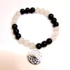Charm Bracelet in Quartz with Black Obsidian round beads. ,
