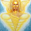 Cosmic Angel Geoffrey was inspired to create this image after many profound experiences during meditation and healing sessions. The original painting 39cm x 27cm was done on wood using a blend of Caran D’ache pencils and gouache. A small photo of this angel was sent to a woman in hospital who was suffering from bowl cancer. She placed the print of the angel above her bed. Several days later her doctor noticed that her health had improved. Although she was in her late eighties and the prognosis was not good she put her improvement and well being down to the intercession of the angel. A4 print with bevelled mount in textured ivory approx 38cm x 30cm.