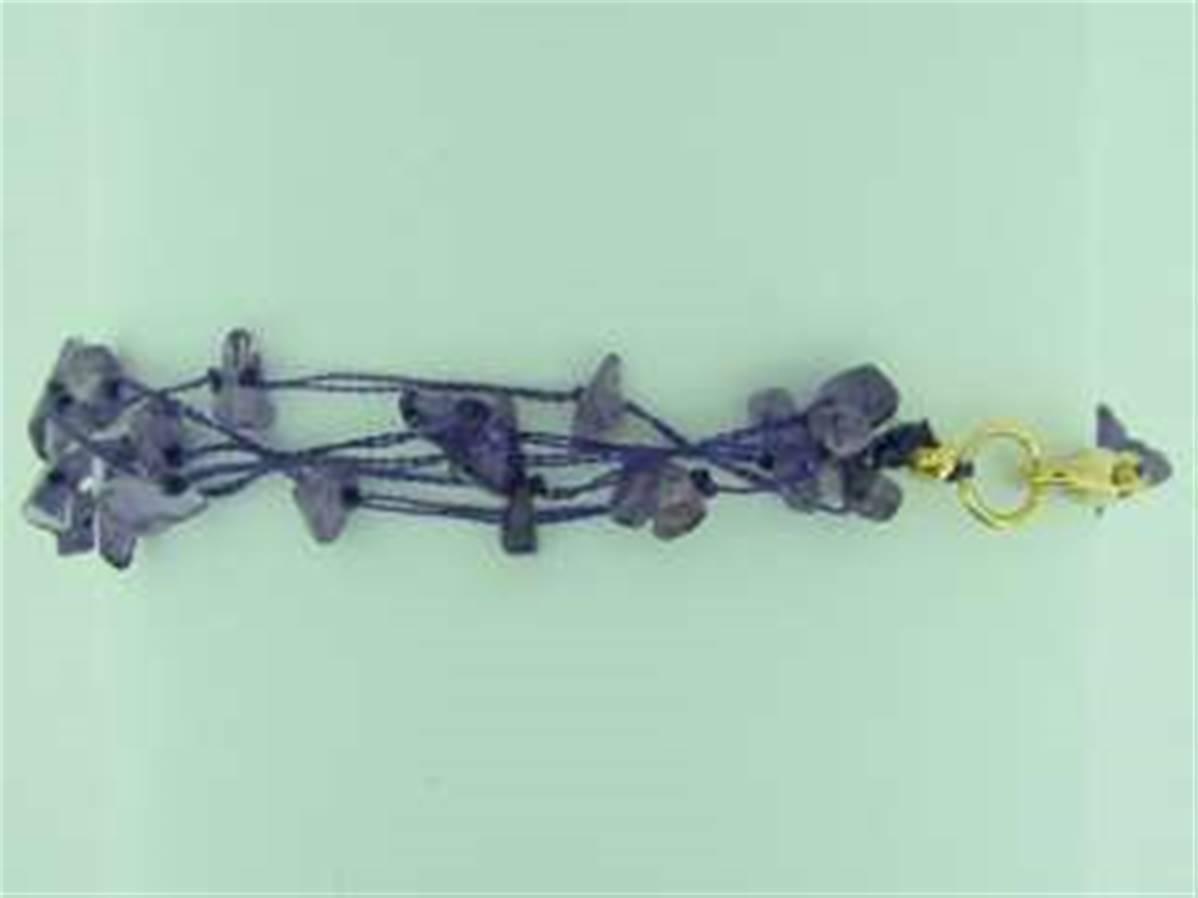 COTTON THREADED GEM CHIP BRACELET IN AMETHYST. FEATURING A GOLD PLATED LOBSTER STYLE CLASP.BRACELET LENGTH = 7.5″. WEIGHT = 6g.