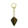 Diamond Shape Gemstone Keyring in Tigerseye Featuring Silver Plated Chain &, Clip.