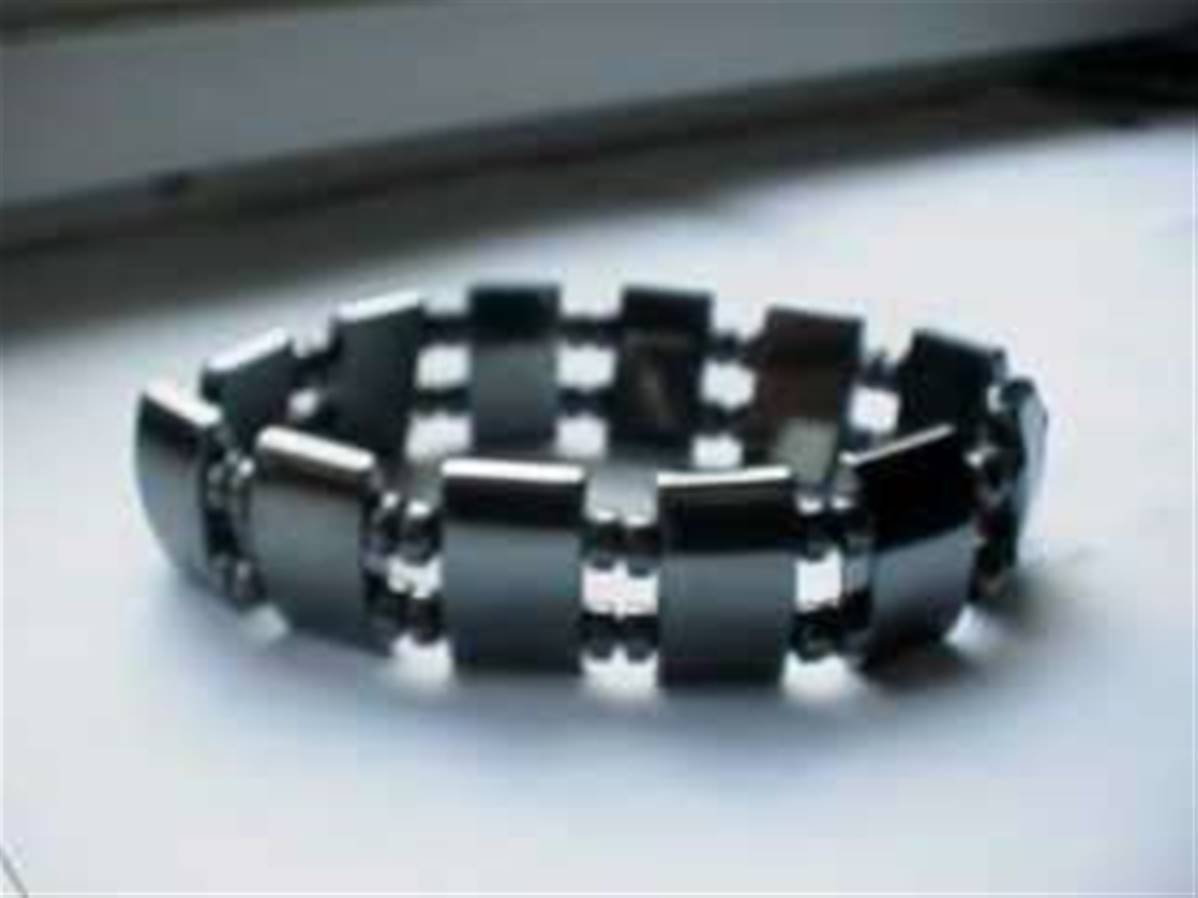 Attractive and comfortable to wear elasticated bracelet comprising of rectangular hematite shapes seperated by disc beads. Look great on both men and women.