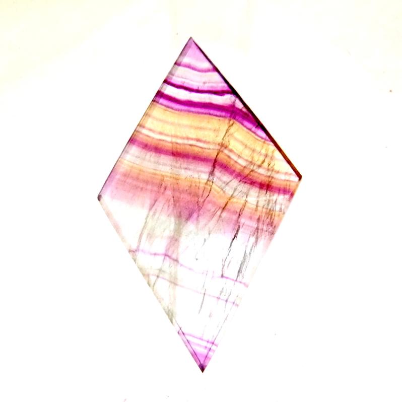 fluorite fully polished diamond shaped slice specimen.