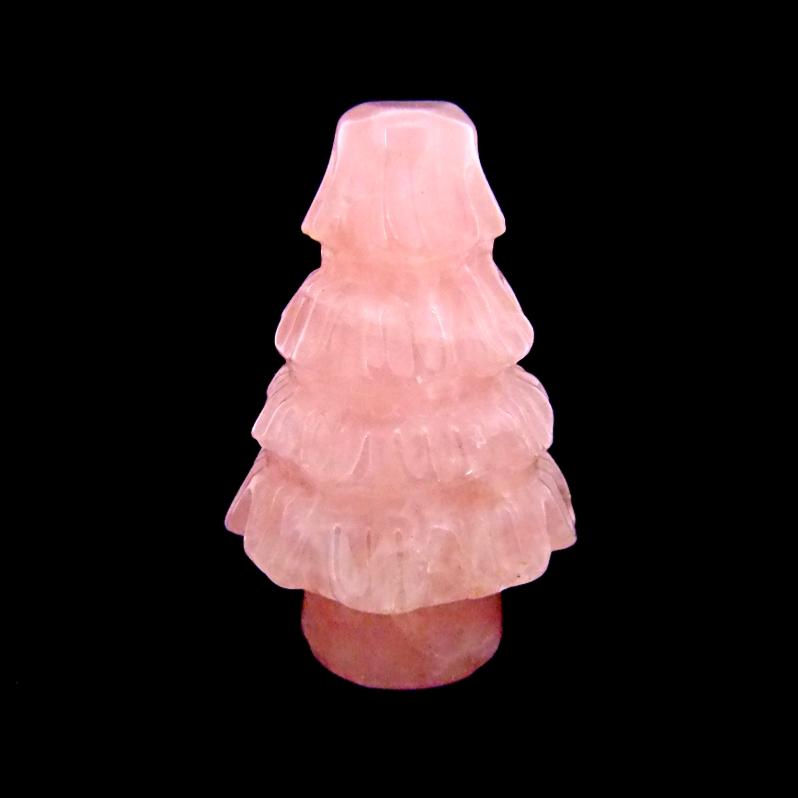 GEMSTONE CHRISTMAS TREE CARVING IN ROSE QUARTZ. ,