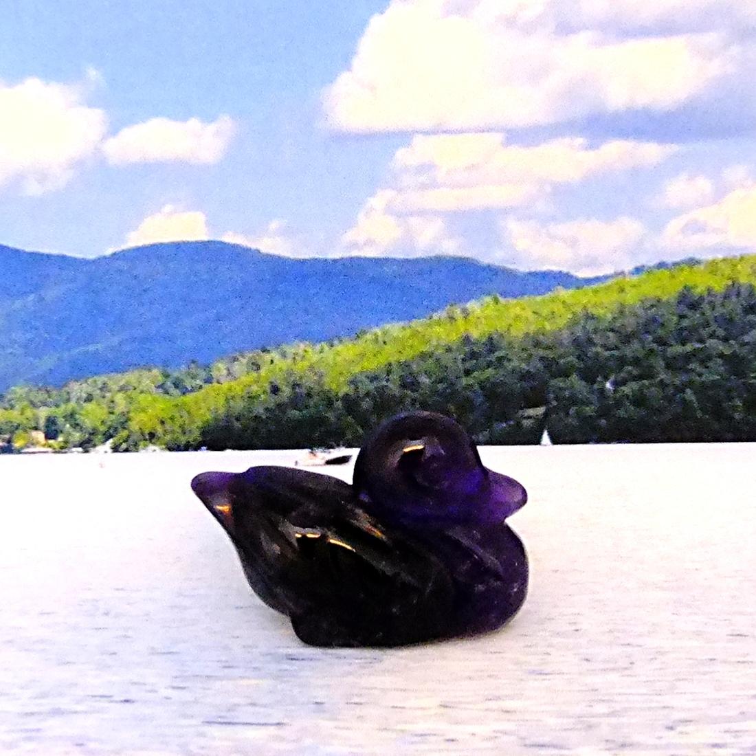 gemstone duck carving in amethyst. ,