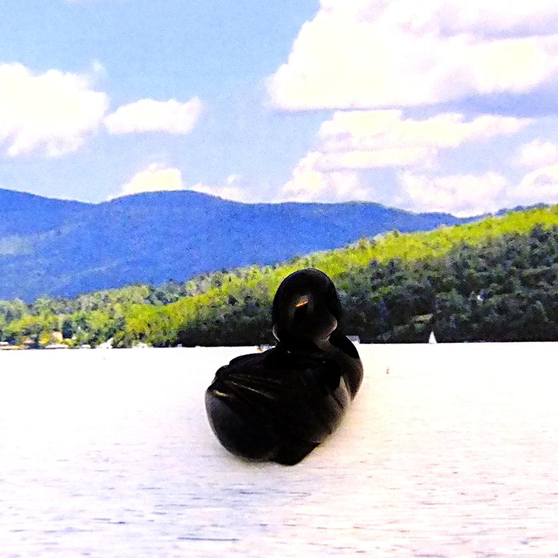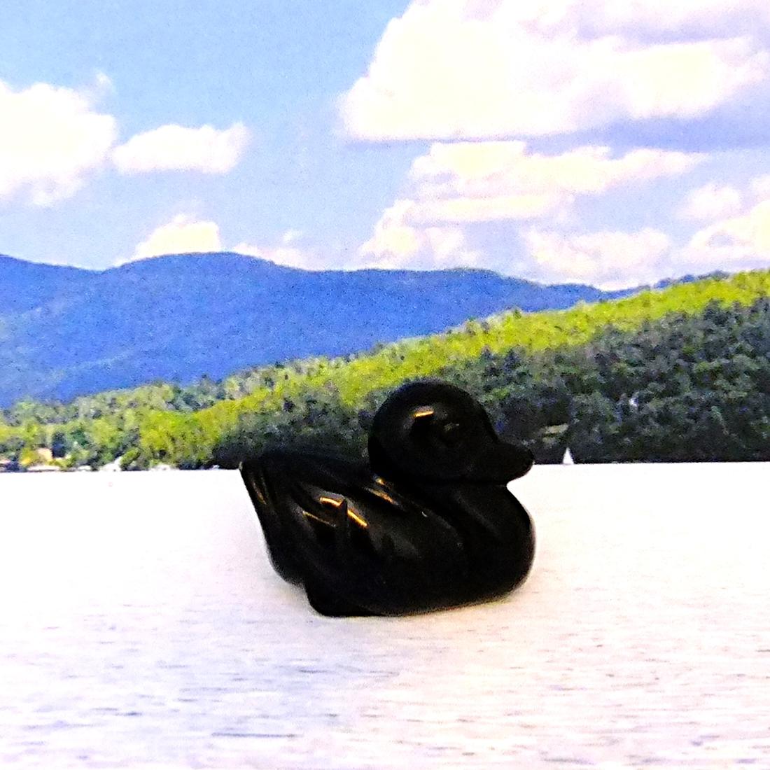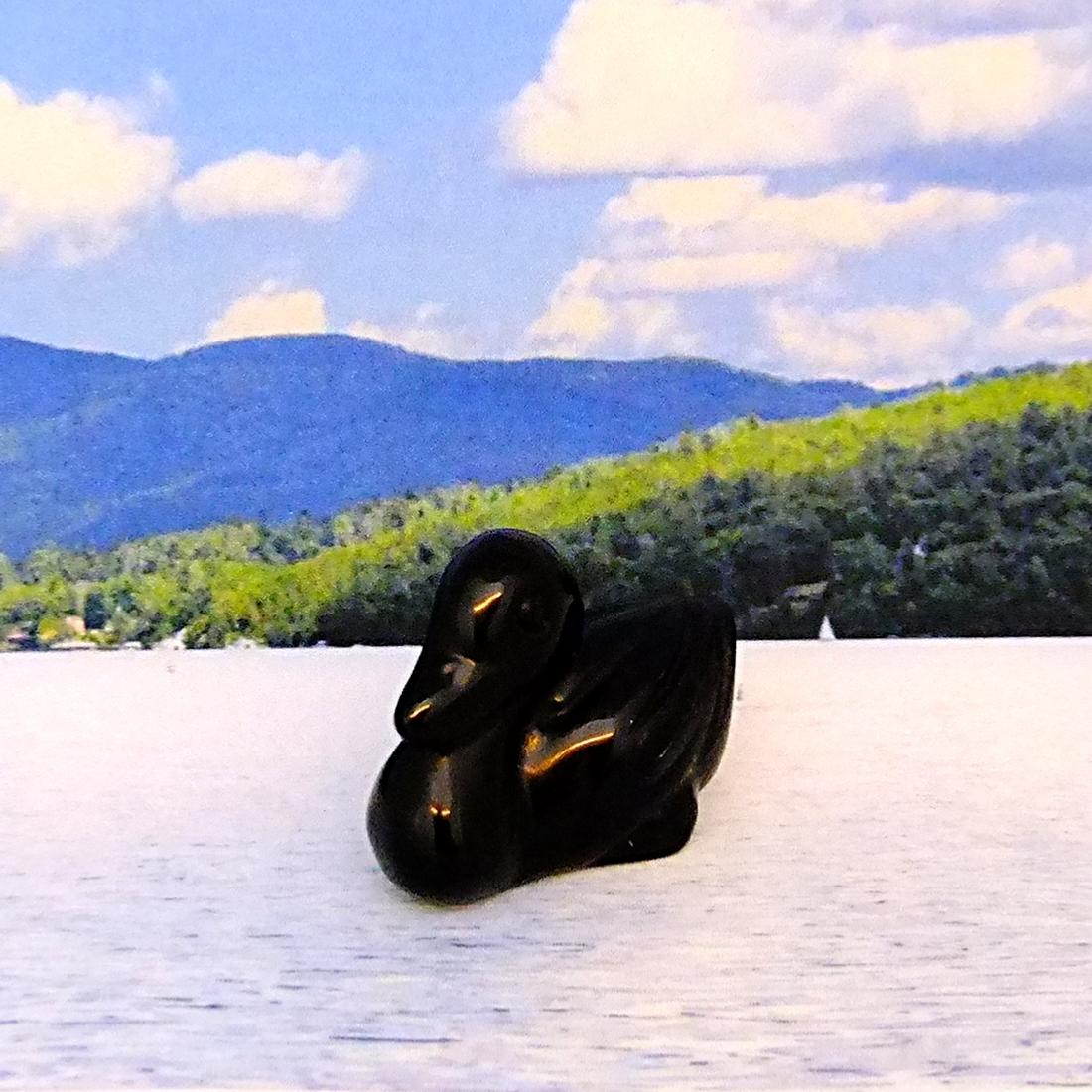 gemstone duck carving in black obsidian. ,