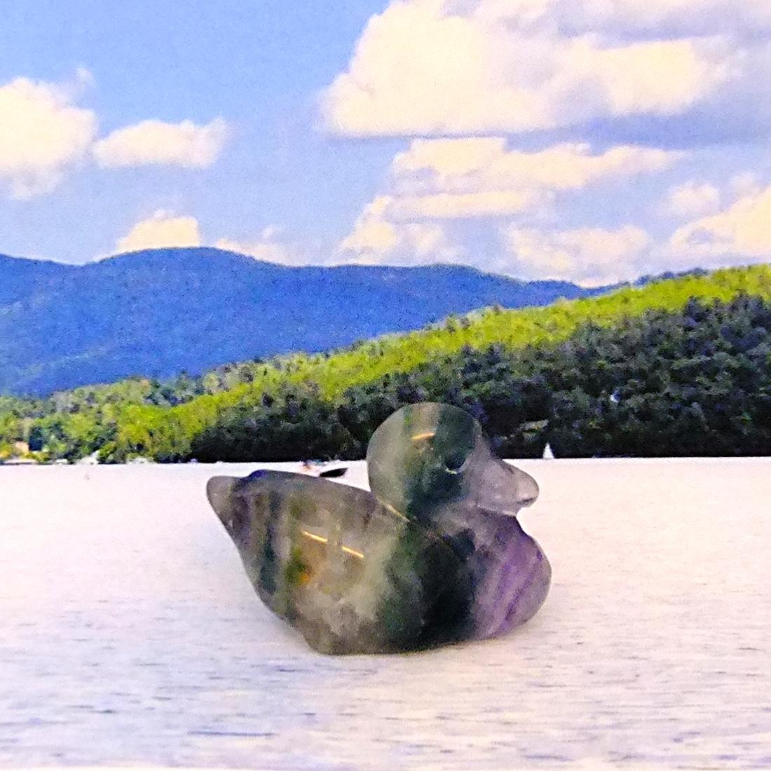 Gemstone Duck Carving in Fluorite