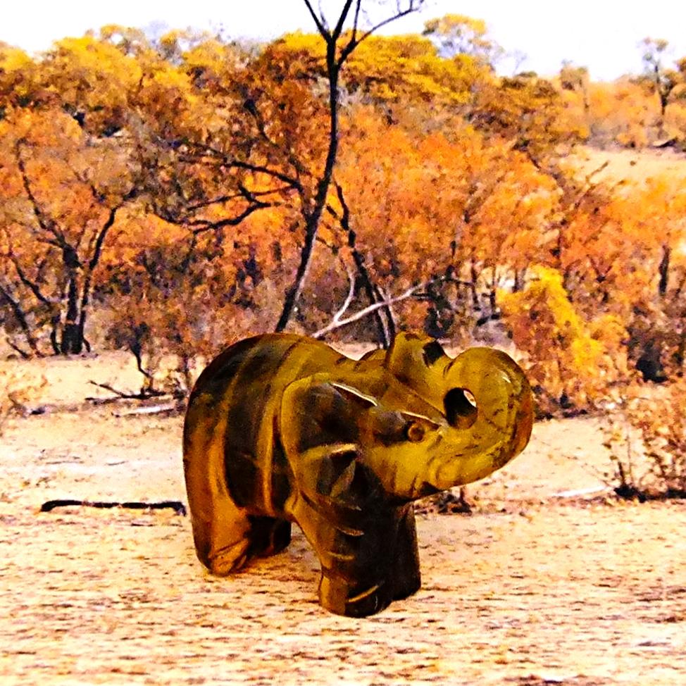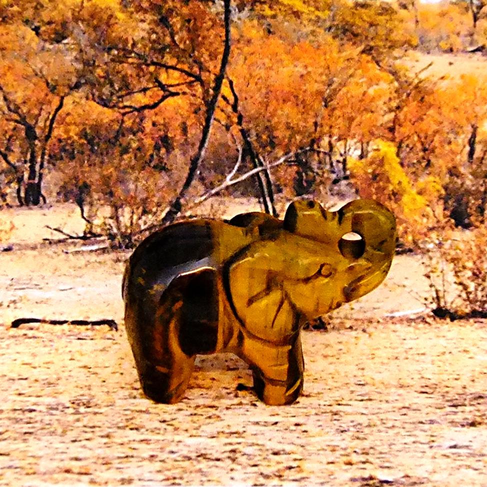 gemstone elephant carving in tigerseye. ,