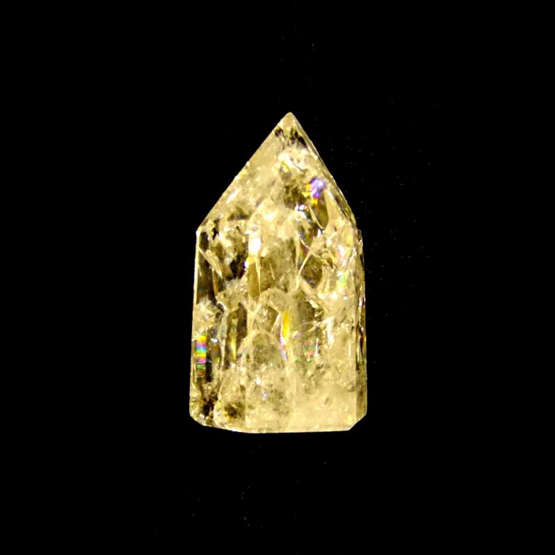 gemstone fire and ice quartz faceted and polished point specimen.