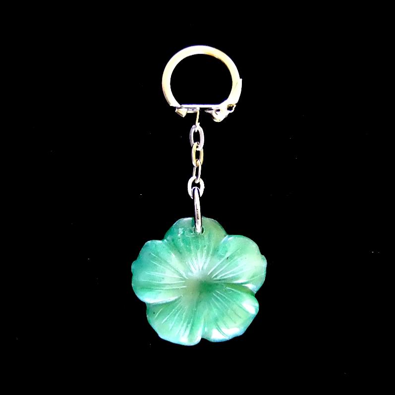 GEMSTONE FLOWER DESIGN KEY RING IN GREEN AVENTURINE. ,