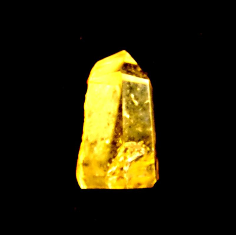 Golden quartz polished point specimen features flat cut base to stand.