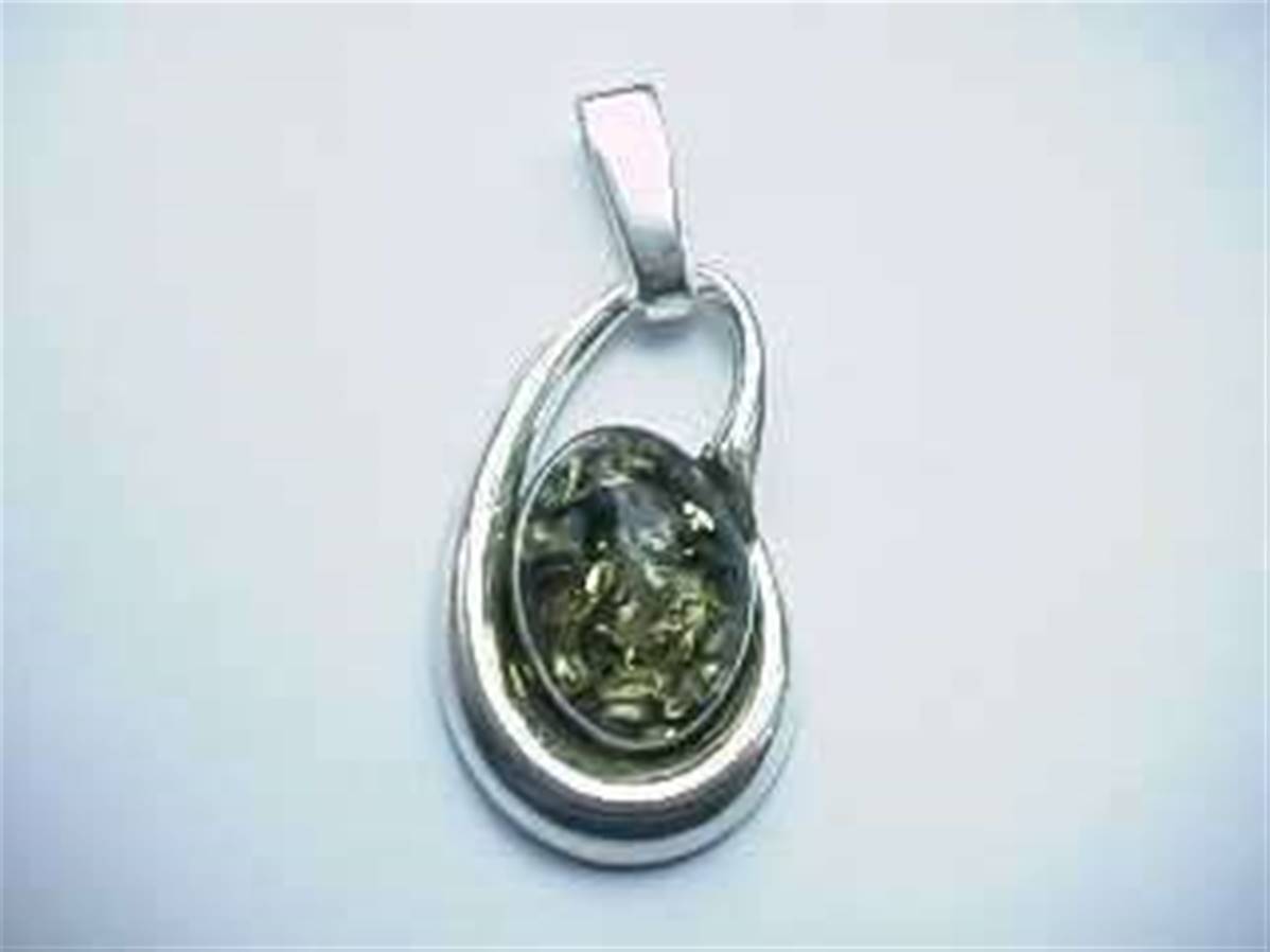 Crafted for us in Gadansk Poland from 925 silver this beautiful pendant is set with an oval in the very popular green amber.Not including the loop for the chain, the pendant measures almost 3.5cm in length.