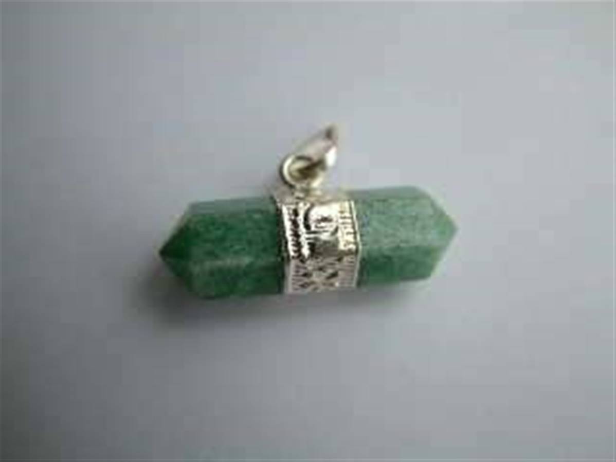 Green Aventurine Indian Silver Horizontal Hexagonal Pendant